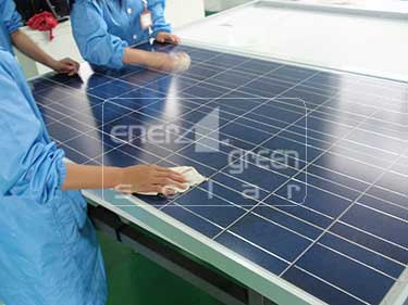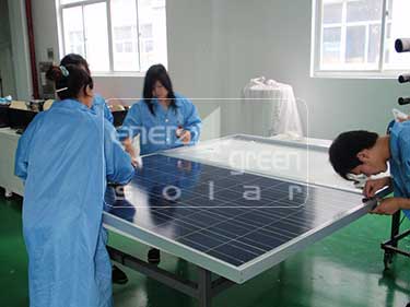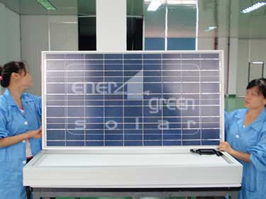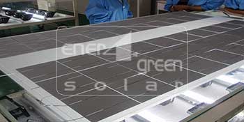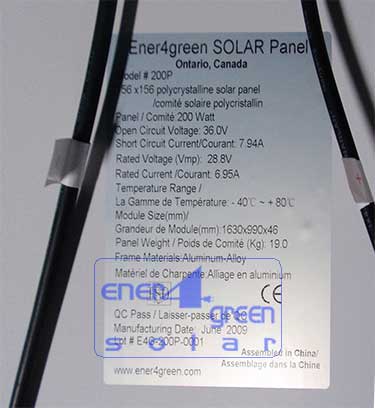 This is a finished Ener4green solar panel with Aluminum Alloy frame. Panels are then subject to rigorous Quality control testing to determine Maximum power output, voltage and current. The panels are then cleaned and inspected for any physical defects such as dents, scratches or cracks.