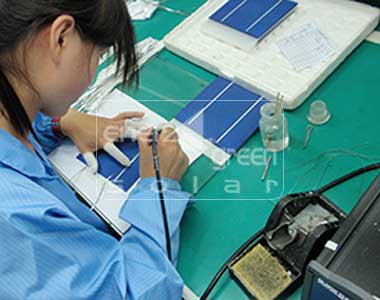 Cells are inspected for cracks and other defects and their power outputs tested. The power output of each cell will determine how many we used in the production of our panels. The Power should increase with each new cell connected. It is important to use cells of similar power output characteristic for higher quality.